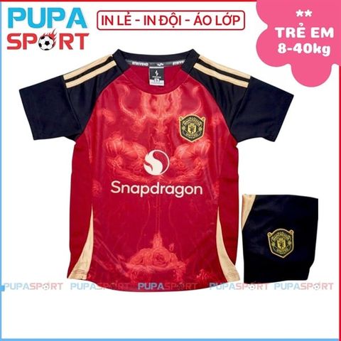 Cuối tuần cả xóm tổ chức giải bóng đá mini cho các bé — ba muốn con trai nổi bật nhất sân với bộ áo MU đỏ trẻ em lửa có in tên bé trên lưng. PUPA SPORT in chính xác theo yêu cầu, màu chữ tương phản nổi bật trên nền đỏ lửa Strivend — không sai một chữ không lệch một màu. Đặt lẻ từ 1 bộ nhận hàng mới thanh toán — đặt từ 10 bộ có ưu đãi kèm tặng vớ cho cả đội nhí.