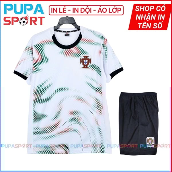JP - Tuyển Bồ Đào Nha sân khách 2025 thun lạnh cao cấp - TRẮNG LOANG CỔ TRÒN